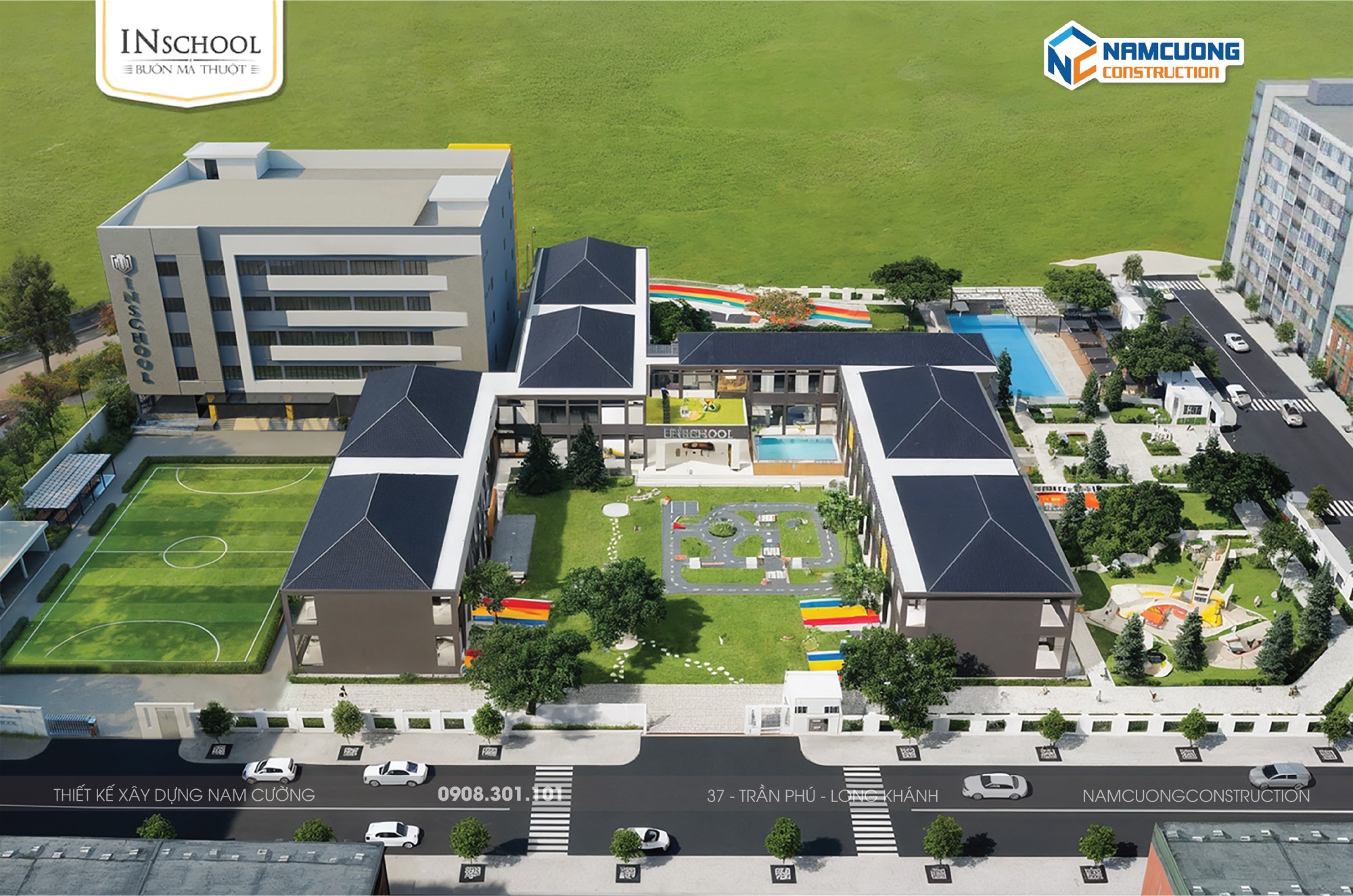 - Công trình trường học cấp 1 & 2 được thiết kế với định hướng xây dựng một môi trường giáo dục an toàn, hiện đại và nhân văn, nơi mỗi học sinh được học tập, vui chơi và phát triển một cách tự nhiên nhất.